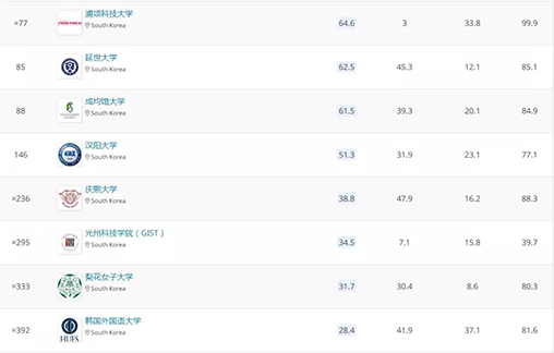 (图为首尔国立大学) 今年共有29所韩国大学进入入围QS世界大学排名榜单,相比2020年减少了5所。在入围QS世界大学排名榜单的25所高校中,有5所进入世界TOP100,这6所大学分别为国立首尔大学,KAIST,高丽大学,浦项科技大学,延世大学,成均馆大学。在今年QS世界大学排名中首尔大学与去年相同,排在世界第37位,保持韩国大学第1的位置。 以下是中国地方大学QS排名情况: